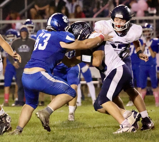 After North Penn opened the game with a punt, the Panthers’ “D” bent but didn’t break, forcing a Muncy turnover on downs on NPM’s 13-yard line.