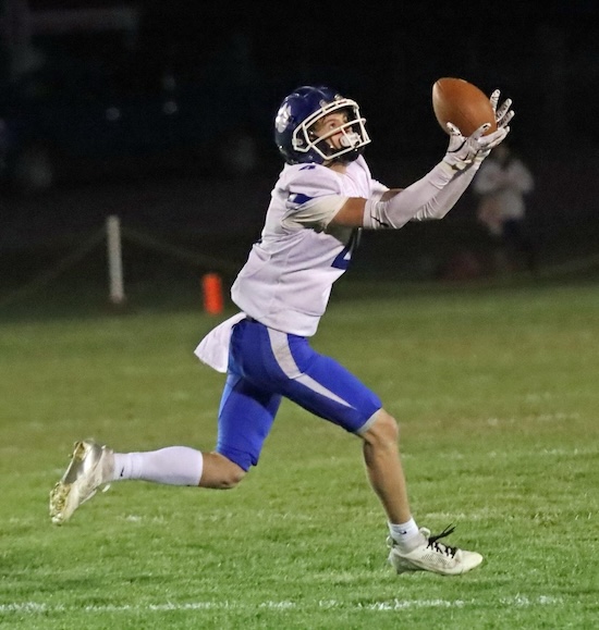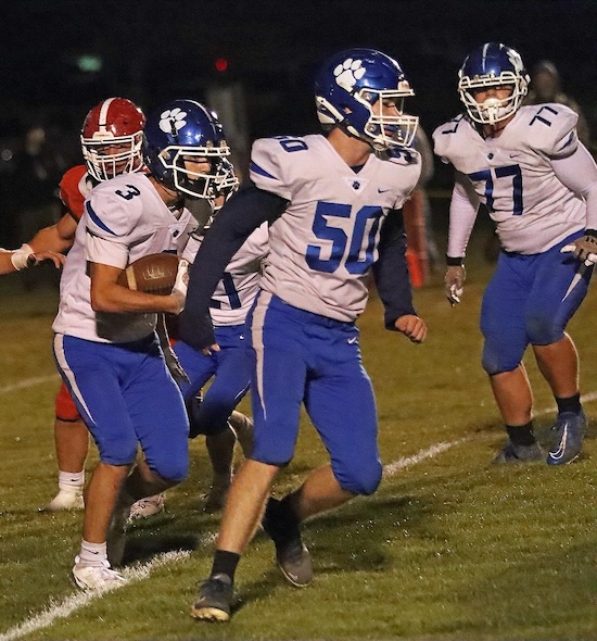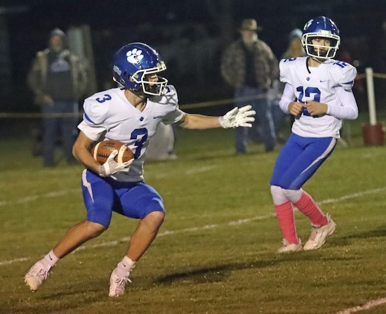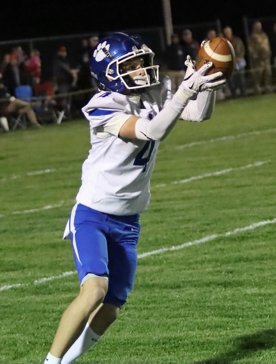 The Trojans opened the night’s scoring with a 23-yard TD run and extra point kick to take a 7-0 lead with nine minutes remaining in the first quarter before the Panthers surprised Troy with a trick play that saw All-State receiver Luke Kreger throw a 78-yard TD pass to Colton Pellett. Brody Grinnell hit the extra point kick and North Penn-Mansfield was tied 7-7 with the State champions with 7:27 left in the opening frame.