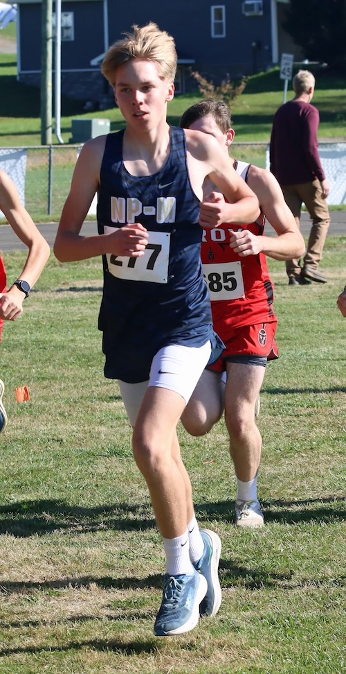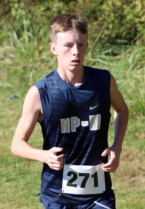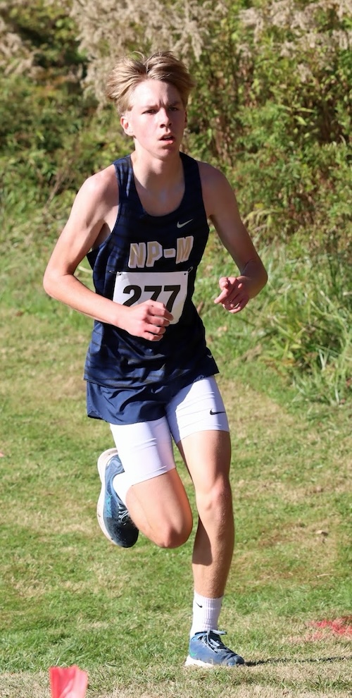 NPM was fifth with 112 points as Braden VanLoon (18:36.8) was 20th, Mason Forer (18:43.4) took 24th, Isaiah VanLoon (19:15.4) came in 34th, and Peter Bishop (19:27.9) was 35th.