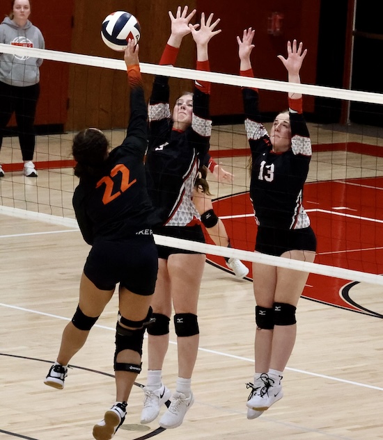 Kameron Lightner finished with 17 digs and 12 kills while Haley Litzelman had 17 kills, three blocks and six digs.