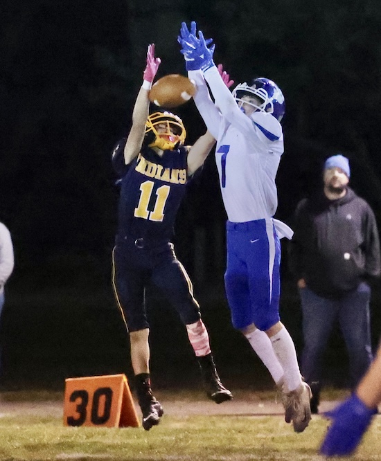 CV’s defense, which forced a pair of North Penn-Mansfield punts and a turnover in the first quarter, again stopped a Panther drive and Hess took the punt return in for the score, but a penalty brought it back and the Indians would turn the ball over on downs at the Panther 27.