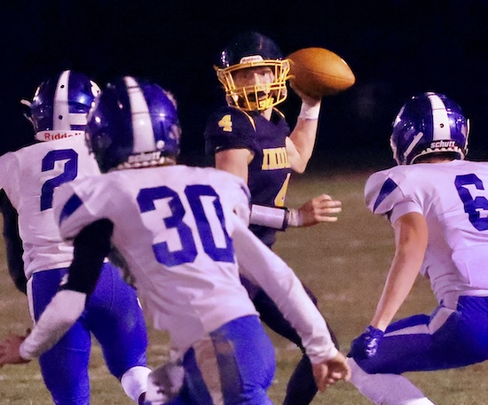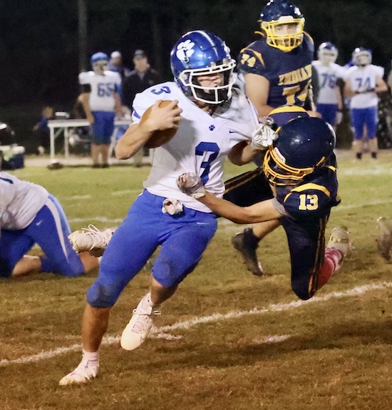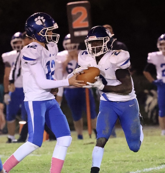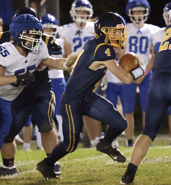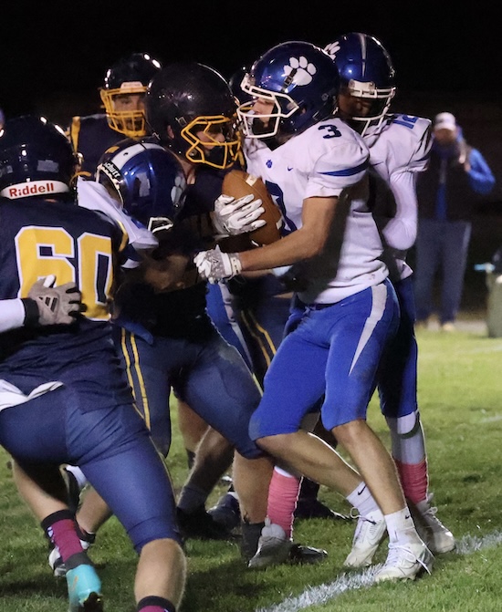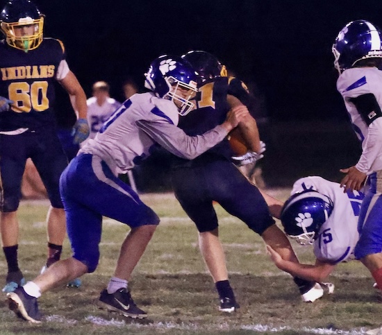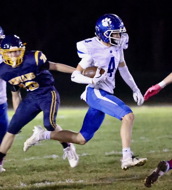 The Panthers took the ensuing free kick into CV territory and Kreger, still at QB, rattled off a pair of runs that set NPM up at the Indians’ 13. Kreger looked to pass but was forced to scramble and found his way to the end zone with 7:09 left in the third.