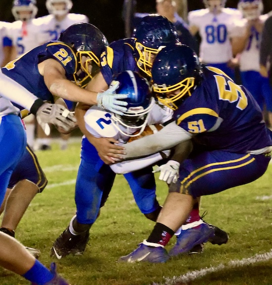 Defensively, Lane collected 13 tackles with three sacks while Churchill had 10 stops, including a sack. Stevie Olson had a pair of sacks and eight tackles, Luke Sottolano had five stops with a sack and Hess had three picks and added five tackles.