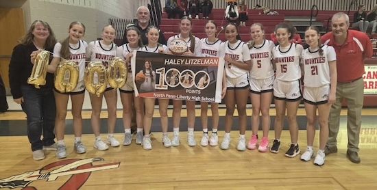 Northern Tier West Sports ReportCANTON — North Penn-Liberty senior Haley Litzelman scored 37 points .. including the 1,000th of her career .. to lead the Lady Mounties to a 74-7 rout of Galeton in the first round of the Canton Christmas Tournament here Monday.