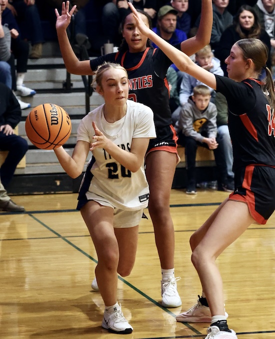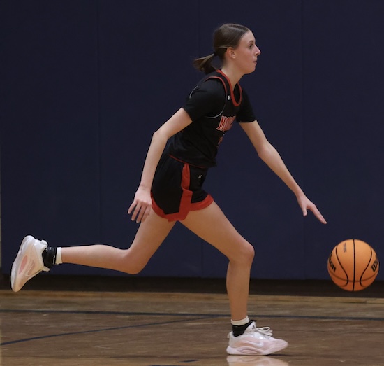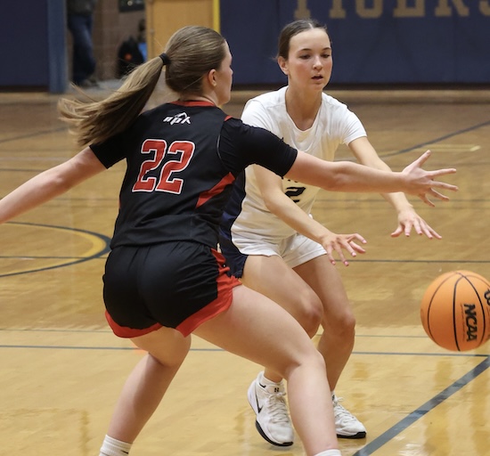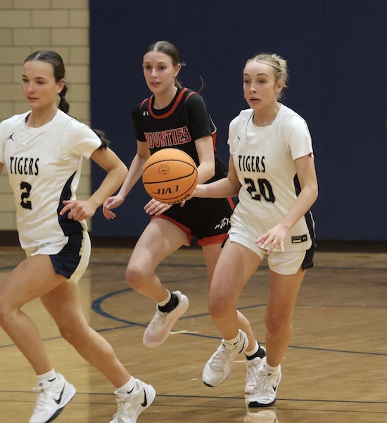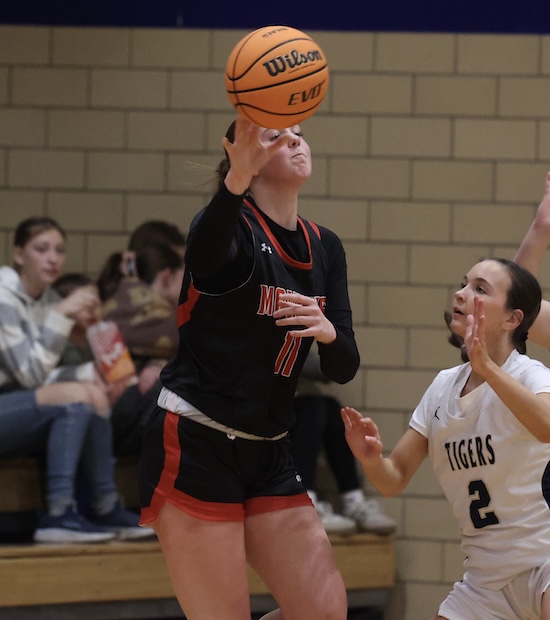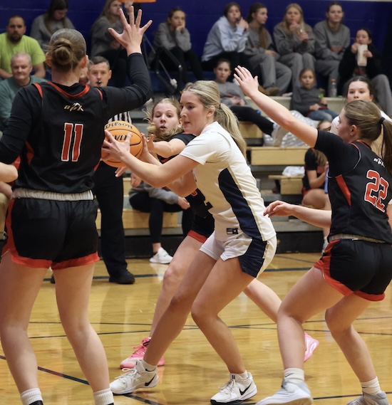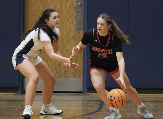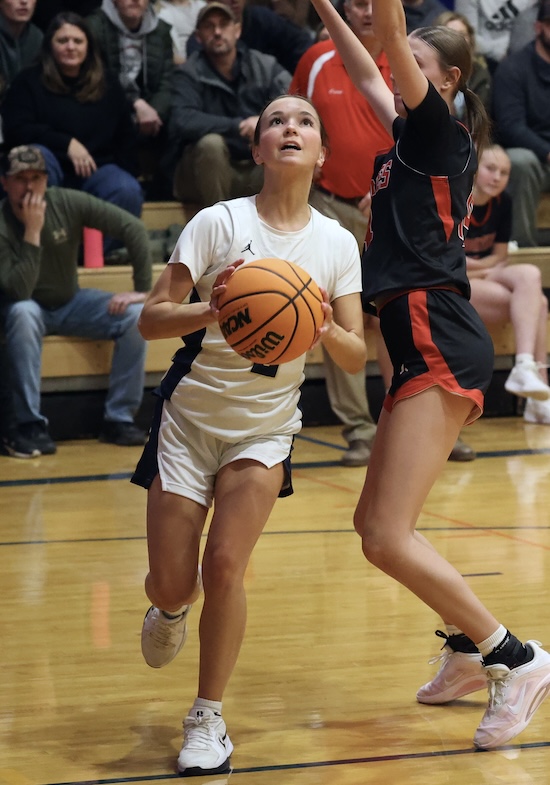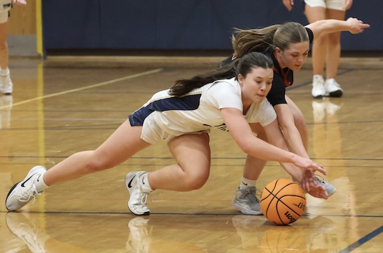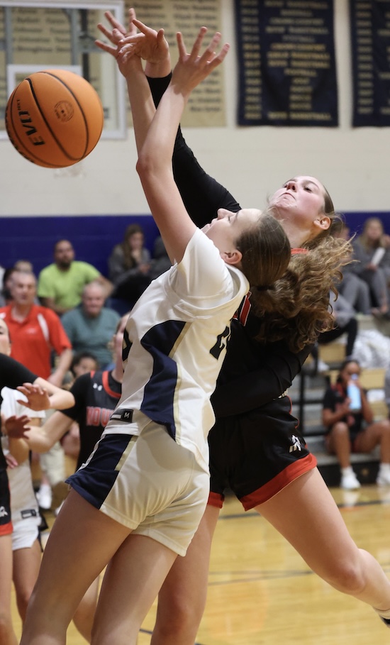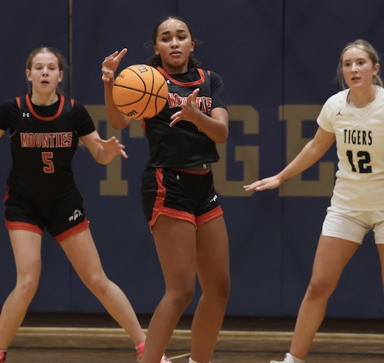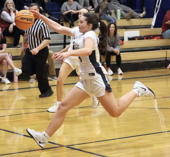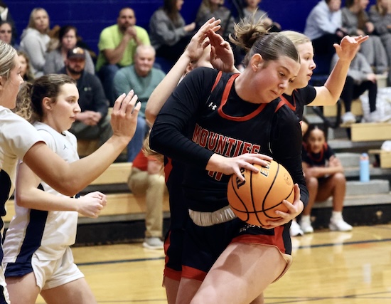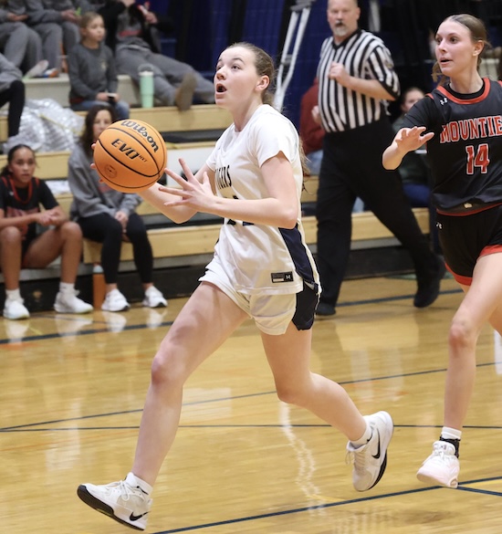 Lightner scored inside on a pass from Rew and Maddy McNamara stole the Mounties’ inbound pass and put it in to cut the NPL lead to 47-45 with under a minute left in regulation.