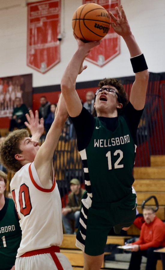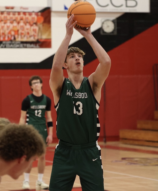 Fletcher did his damage early .. scoring 11 points in each of the first two quarters .. while Rothermel scored 13 second half points, including six in the Hornets’ 18-9 final frame where five Wellsboro players scored to seal the win.
