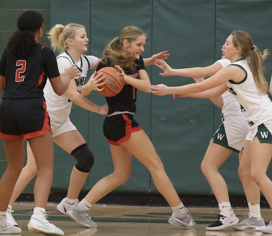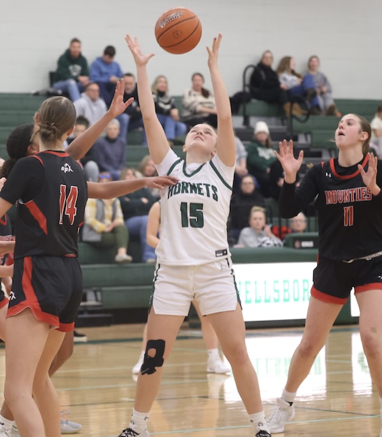 Wellsboro jumped out to a 5-0 lead to start the game, holding the Lady Mounties scoreless until Haley Litzelman scored inside with 1:30 left in the first quarter.