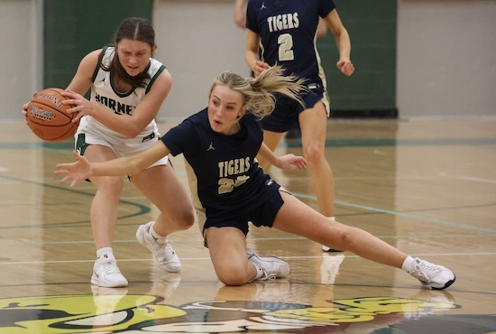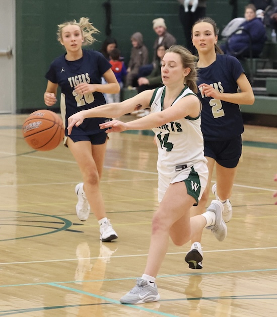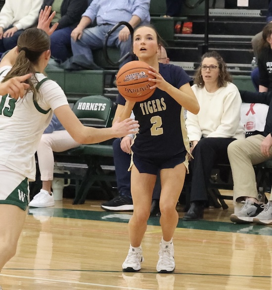 NPM’s defense allowed just three baskets on the night by Wellsboro, while the Tigers jumped out to a 15-2 lead after a quarter of play and went up 20-7 at the break.