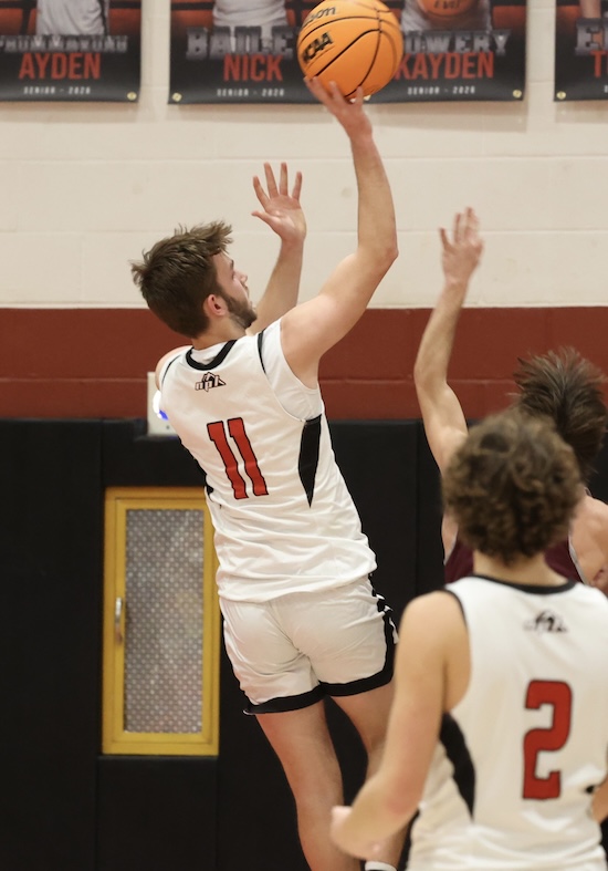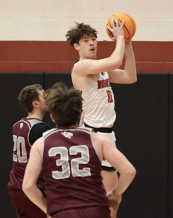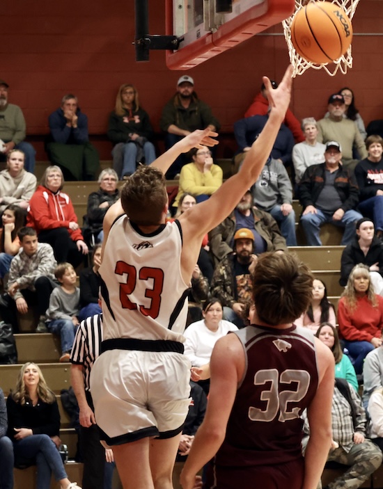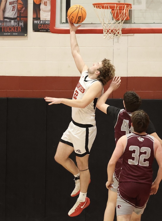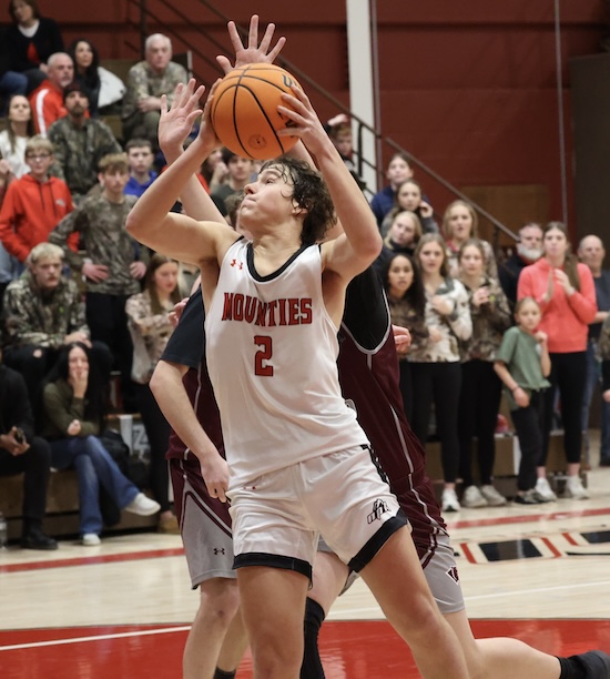 Down 35-32 as they entered the final frame, the Mounties got an Evan McTish putback, a 3-pointer and a breakaway lay-up by Landon Mattern and a drive by Brody Grinnell to go on a 9-0 run and take a 41-35 lead with four and a half minutes left in the game.