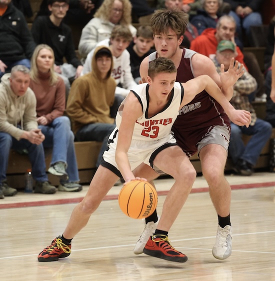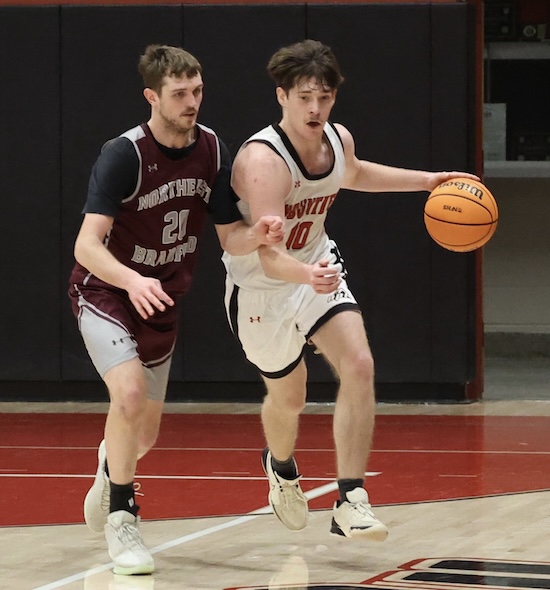 Luke Kreger hit one-of-two from the line with 26 seconds left to put the Mounties up 46-44, before NEB got two freebies with 11 seconds left to tie it up. The Mounties had lots of time to get the ball up court and work for a winning shot, but NEB’s press forced NPL into a turnover and the Mounties responded by fouling NEB’s Cooper Brown with just 1.2 seconds left.