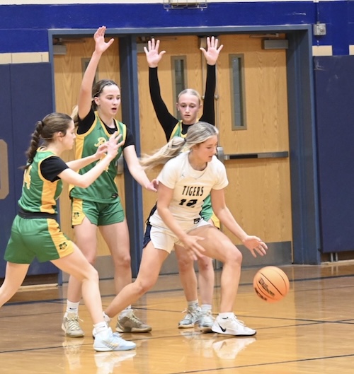 Maddy McNamara led the Lady Tigers with 17 points and added five assists and six steals, while Addie Lehman scored nine points and had three assists and three steals, Julia Kaczynski had nine points, two blocked shots and two steals, Elaina Shaw had eight points and four rebounds and Kameron Lightner had six points, 15 rebounds, four assists and four steals.
