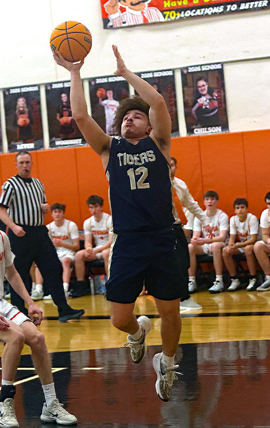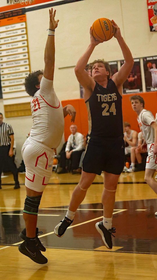 Andy Hermansen led the Tigers with a double-double of 17 points and 10 rebounds and added five steals. Jason Harer scored nine points and had five assists and three blocked shots, Layne Cummings had five points, Colton Pellett and Patrick Youmans had four points each and Keaton Manikowski added two points.