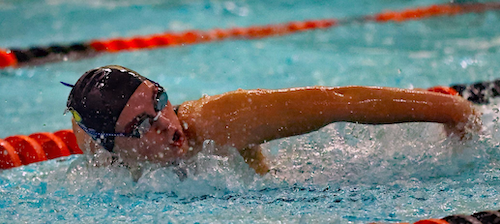 Piper Anderegg won two events, taking first in both the 200 Yard Freestyle (2:07.43) and the 100 Yard Butterfly (1:07.98), as did Makenna Robbins, who won the 50 Yard Freestyle (27.28) and the 100 Yard Freestyle (1:01.43). The two joined Kristina Belz and Joelle Bull to win the 200 Yard Freestyle Relay (1:53.97).