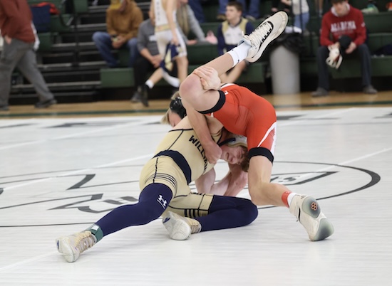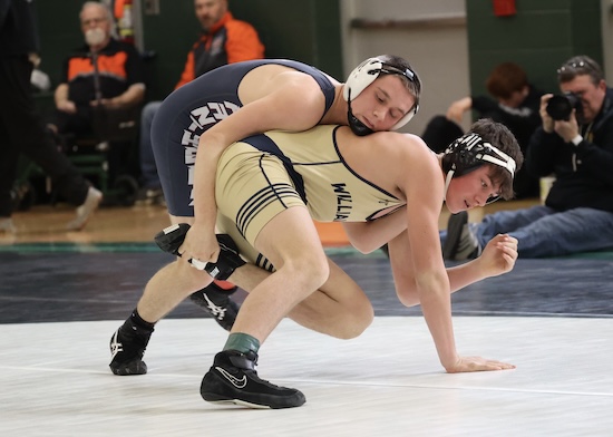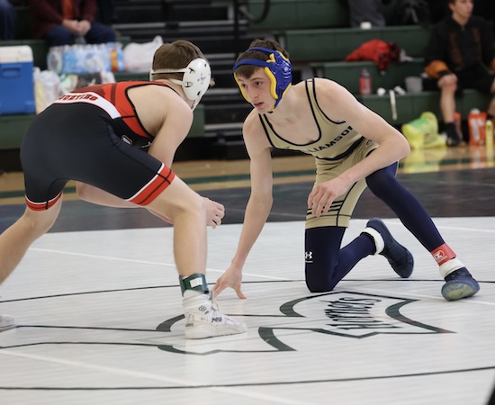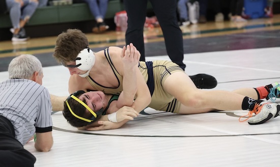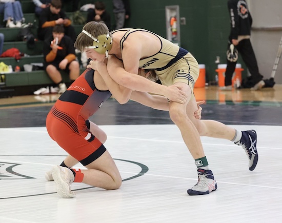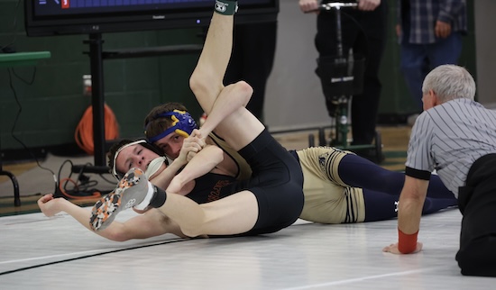 Simonds pinned his way to his title .. recording a pair of falls in 1:10 to reach the 127 pound final and pinning Troy’s Keagan Kerr in 36 seconds to win the championship. The senior was also recognized by NTL officials with an honorable mention Sportsmanship Award.