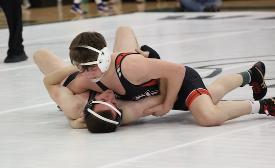 Nickerson, who placed third here a year ago, recorded a pin in 4:32 in his semifinal match-up before earning a 15-6 over Canton’s Levi Vermilya in the 107 pound final.