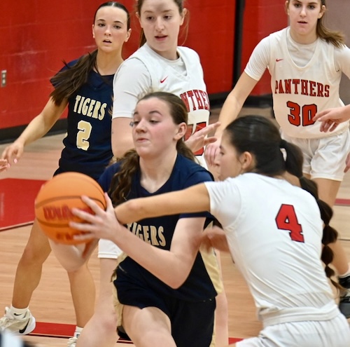 Mansfield played the hosts to an 8-all draw in the first quarter behind a pair of baskets by Julia Kaczynski and one each from Maddy McNamara and Kameron Lightner, but Bloom held the Lady Tigers to an Elaina Shaw bucket in the second quarter and went into the break up 25-10.