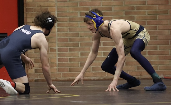 No. 8 seed, 127-pounder Simonds (36-11) won his opening bout Friday night with a 15-0 TF over Northeast Bradford’s Hunter Comstock (27-13) before losing by fall to No. 1 seed C.J. Caines (44-0), a sophomore from Hanover Area, to drop into the consolation bracket. Simonds will face No. 10 seed Brody Bower (22-17) Saturday morning. Simonds beat the Montoursville junior 10-0 last week at Districts.