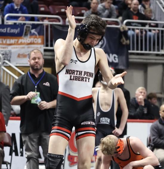 Northern Tier West Sports ReportHERSHEY — North Penn-Liberty sophomore Bodhi Nickerson capitalized on his first trip to the State Championships, earning a 5-0 win Saturday to claim a 7th-place medal for the Mounties.