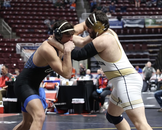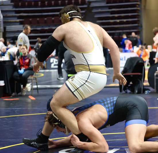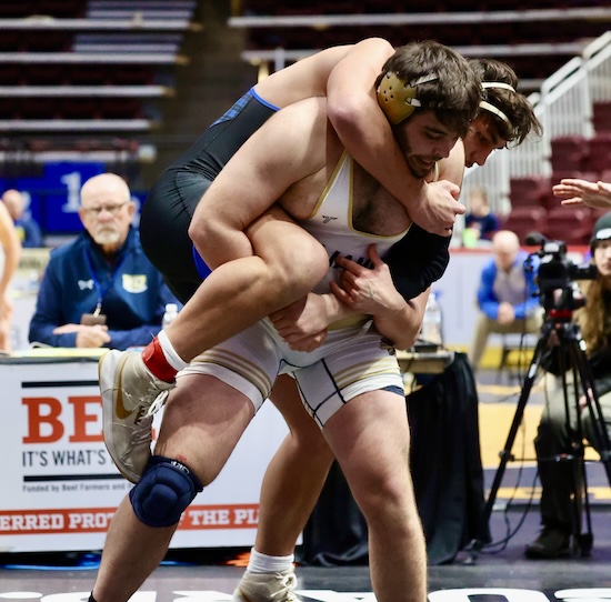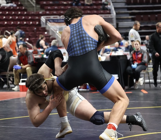 In his five matches at States, Sottolano faced four eventual medalists, including in his opening bout, a 7-1 over Glendale senior Daniel Williams, the 6th-place finisher, before falling 2-1 to eventual 285-pound runner-up Caleb Tyler, a junior from Fairfield. A 4-2 consolation win led to another 2-1 loss .. to Upper Darby junior Eoghan Savage, the 5th-place winner.