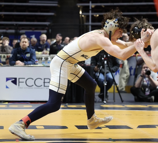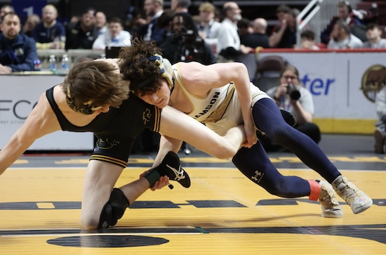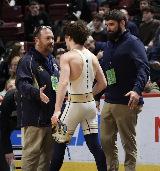 There, Wilson faced Southern Columbia’s Rowen Humphrey, who Wilson beat in both the District and Regional finals this year. Saturday, Wilson rode out first and second period takedowns to top Humphrey 6-0 and claim his first State medal.