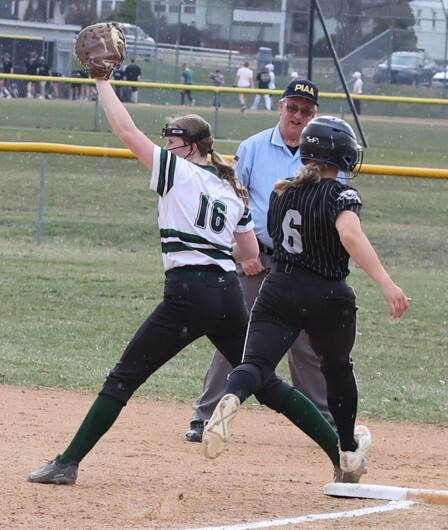 Hornets lead-off hitter Rylee Coolidge crushed a long fly ball to left field to open the game, but Abby Delosa managed to run it down for the out. Ady Frantz followed with Wellsboro’s lone hit when she delivered a one-out single to center field.